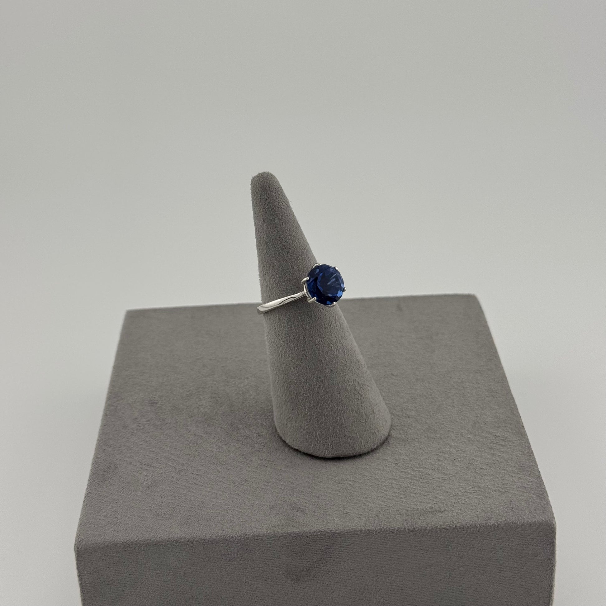 Radiating timeless elegance, this sterling silver sapphire solitaire ring is the perfect blend of simplicity and sophistication. Featuring a vivid deep-blue round sapphire gemstone, this ring captures light beautifully, making it a captivating addition to any jewelry collection.