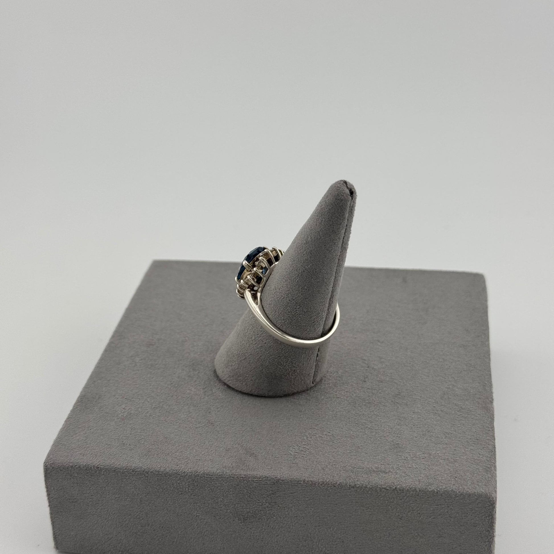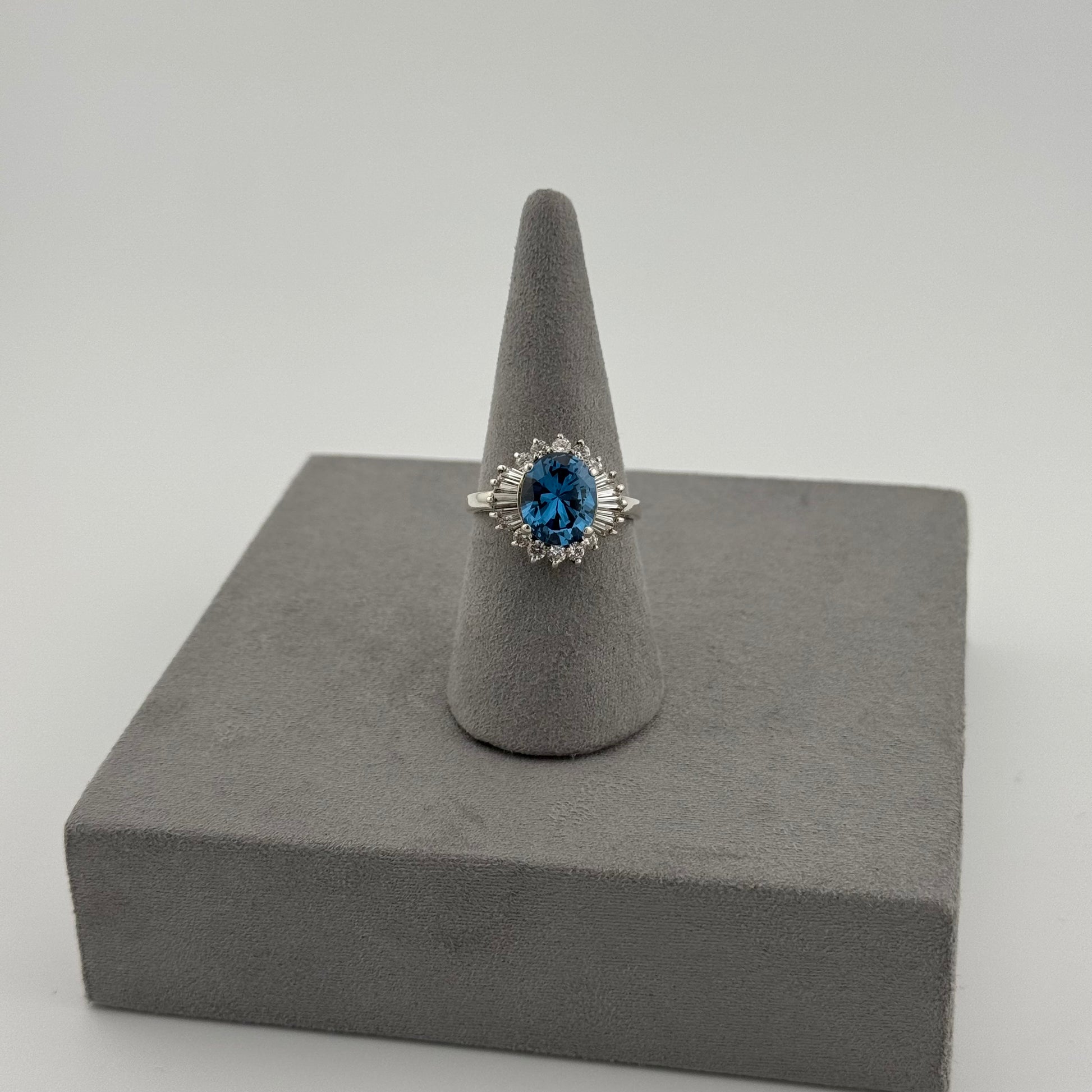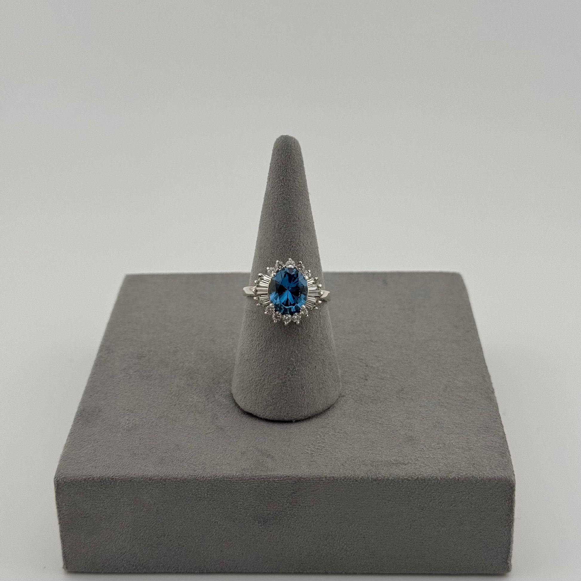 Blue Topaz Halo Ring - Sterling Silver